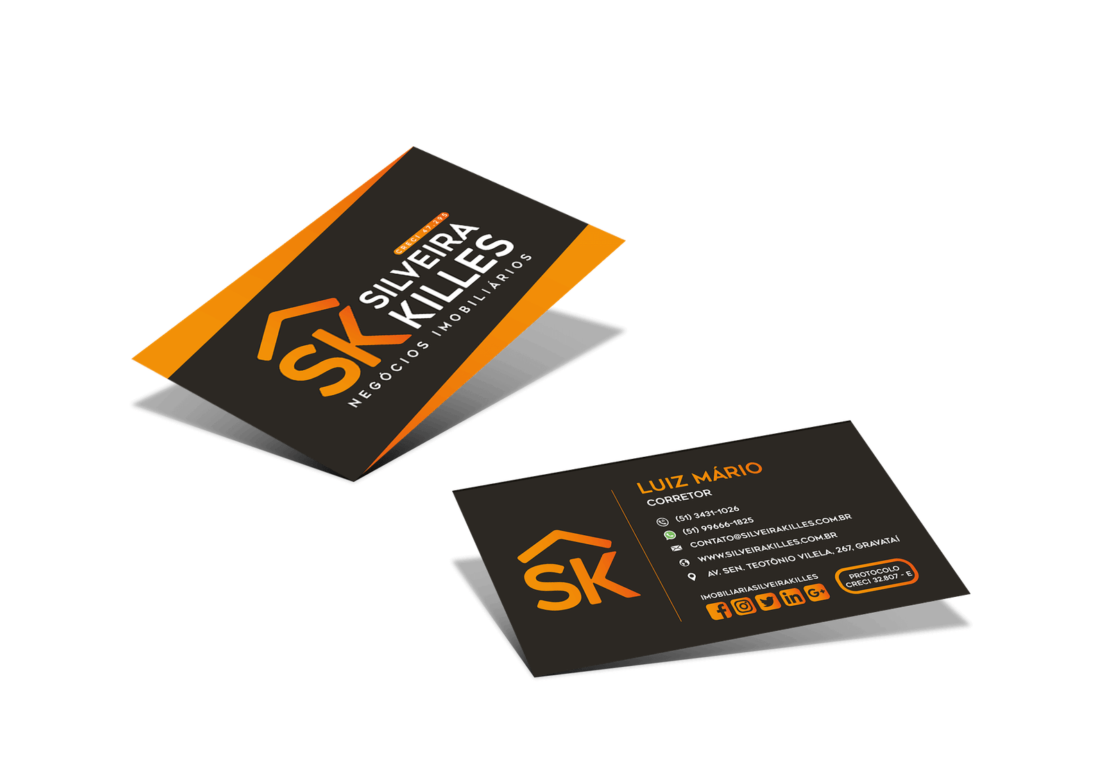 A Imobiliária Silveira Killes foi criada com o objetivo de ajudar seus clientes a obterem maior segurança agilidade na venda e locação dos seus imóveis. Porém, não possuía um logotipo ou qualquer trabalho relacionado à marketing. Para fazer com que a empresa aumentasse sua encontrabilidade, seu relacionamento e suas vendas, foi desenvolvido pela nossa equipe um projeto de estruturação de marketing para o negócio. Nosso objetivo era realizar a construção de uma marca que transparecesse confiança, a fim de construir um posicionamento sólido, que fosse legível e clean, para facilitar a compreensão e trazer os clientes para perto da empresa. Para realização destes objetivos, foram desenvolvidos os seguintes materiais: